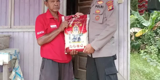 | Bentuk Kepedulian Sesama Polsek Muara Lawa Berbagi Bansos kepada Warga Masyarakat |