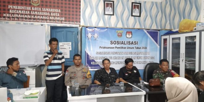 Samarinda – Bhabinkamtibmas Kelurahan Karang Mumus Polsek Samarinda Kota Bripka Eko Ary W bersama Babinsa menghadiri kegiatan sosialisasi Penguatan Partisipasi Masyarakat dalam rangka pelaksanaan Pemilihan Umum Tahun 2024 yang di laksanakan oleh PPS Kelurahan Karang Mumus.