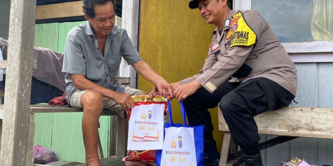 Bhabinkamtibmas Desa Kembang Janggut Bagikan Paket Sembako Bantuan Kemanusiaan Untuk Negeri Kepada Warga Yang Kurang Mampu