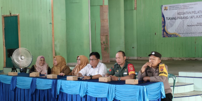 Kukar – Bhabinkamtibmas Desa Anggana Aipda Dwi Cahyadi bersama Babinsa Kopka M. Yunus Ogi hadiri Pembukaan Pelatihan dan Sertifikasi Tukang Pasang/Aplikator/Instalatur Baja Ringan yang diselenggarakan oleh Balai Jasa Konstruksi Wilayah V Banjarmasin di BPU Desa Anggana, Selasa (22/08/2023).