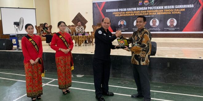 Samarinda – Bidhumas Polda Kaltim Laksanakan Sosialisasi tentang pentingnya bijak dalam bermedia sosial di Politeknik Negeri Samarinda, Jumat 16/12/2022).