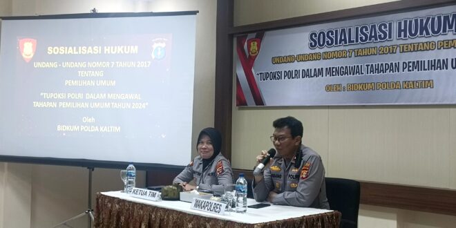 Bontang – Bidkum Polda Kaltim laksanakan Sosialisasi Hukum Semester II Tahun 2023 Tentang Tupoksi Polri dalam Mengawal Tahapan Pemilu Tahun 2024 di Polres Bontang, Rabu (04/10/23).
