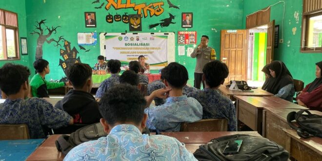 Paser – Bhabinkamtibmas Polsek Long Kali Brigpol Tri Yuli Anwar dan Aiptu Sudirmanto di SMK Al-Ihklas Long Kali memberi sosialisasi tentang Tertib Lalu Lintas, bahaya dan dampak negatif dari bullying di lingkungan sekolah Kamis (7/3/24).