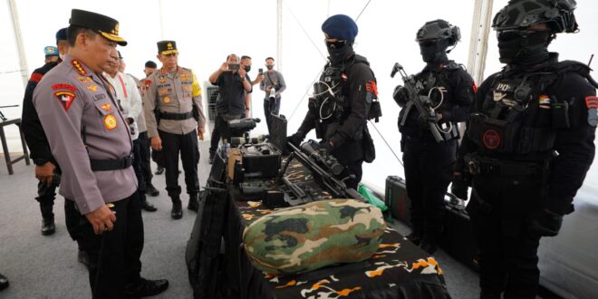 Dalam tinjauannya, selain melihat kesiapan personel, orang nomor satu di kepolisian ini juga memastikan seluruh peralatan yang digunakan untuk menghadapi situasi kontijensi terkait dengan bencana mulai dari peralatan SAR di laut, darat dan di udara maupun potensi ancaman bom dapat dioperasionalkan.