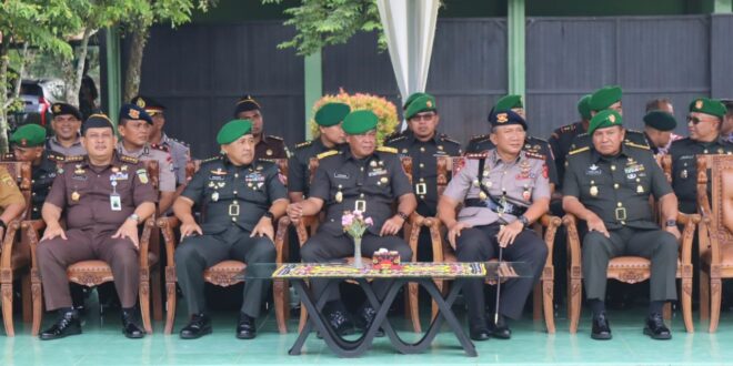 Samarinda – Dansatbrimob Polda Kaltim, yang mewakili Kapolda Kaltim menghadiri Upacara Alih Kodal Kesatuan dan Serah Terima Jabatan Danyonif 611/Awang Long. Senin (04/12/23).