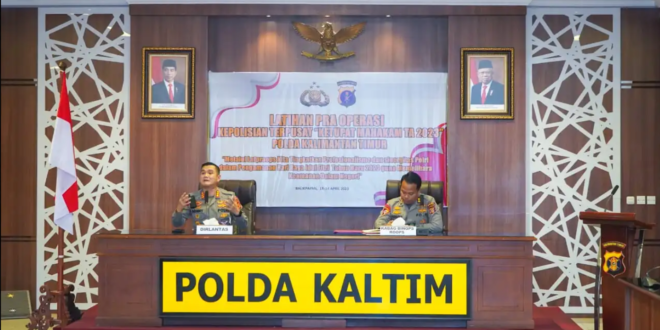 Balikpapan – Dirlantas Polda Kaltim Kombes. Pol. Sonny Irawan, S.I.K., M.H., membuka latihan pra operasi kepolisian (Latpraops) terpusat Ketupat 2023, dalam rangka pengamanan perayaan Idul Fitri 1444 H tahun 2023. Kegiatan tersebut digelar di Rupatama Polda Kaltim, Kamis (13/4/2023).Menurut Dirlantas, kegiatan Latpraops yang dilaksanakan bertujuan menyamakan pola pikir dan pola tindak bagi satker/satwil yang akan melaksanakan kegiatan pengamanan perayaan Idul Fitri.“Kegiatan ini juga untuk meningkatkan kemampuan dan keterampilan personel Polri yang bertugas dalam pengamanan perayaan Idul Fitri serta mempersiapkan keefektifan perlengkapan yang akan digunakan dalam kegiatan pengamanan perayaan Idul Fitri,” ujar Kombes. Pol. Sonny Irawan.