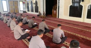 Balikpapan – Personel Batalyon A Pelopor Satuan Brimob Polda Kaltim Rutin gelar kegiatan Pembinaan Rohani dan Mental di Masjid As-Salam, Kamis (20/07/23). Kegiatan dipimpin langsung oleh Pasimin Batalyon A Pelopor AKP Agus Susanto tersebut juga diikuti seluruh personel Sat Brimob Polda Kaltim yang beragama muslim secara khidmat. Dansat Brimob Polda …