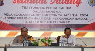 Kutai Barat – Tim Audit tahap 1 tahun 2024 Itwasda Polda Kaltim laksanakan Audit di Polres Kutai Baratdengan sasaran aspek Perencanaan dan Pengorganisasian Tahun 2024 di ruang aula Polres Kutai Barat, Senin (4/3/2024) Kegiatan Audit Tahap I tahun 2024 oleh Itwasda Polda Kaltim di pimpin oleh Kombes Pol Jepri Yuniardi, …