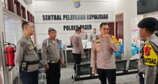 Paser – Guna Memastikan Kebersihan Ruang Pelayanan Berjalan Sebagaimana Mestinya Kapolres Paser AKBP Yusep Dwi Prastiya, SH, SIK, MH melakukan pengecekan dan pemeriksaan pada ruang Penjagaan, SPKT dan SKCK, Selasa (16/1). Didampingi PJU (Pejabat Utama) Polres Paser, AKBP Yusep mengecek kebersihan Ruang Pelayanan termasuk lahan parkir kendaraan pengunjung, Kapolres Paser …