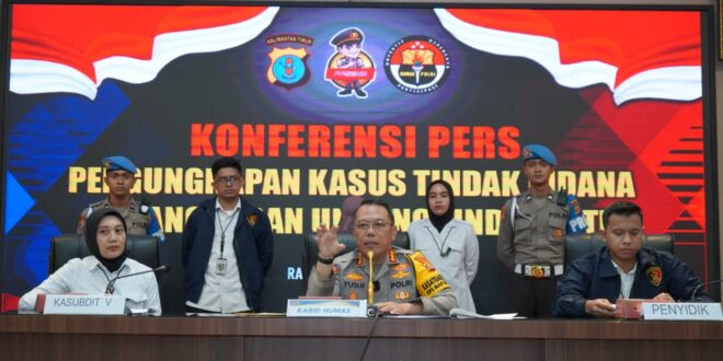Konferensi Pers tersebut dipimpin langsung Kabid Humas Polda Kaltim Kombes Pol Yusuf Sutejo, S.I.K., M.T., didampingi Kasubbid Penmas Bidhumas Polda Kaltim AKBP I Nyoman Wijana, S.Ag., Ps. Kasubdit V Ditreskrimsus Polda Kaltim Kompol Dian Puspitasari, S.H., M.H., S.I.K., dan Panit 3 Subdit Cyber Ditreskrimsus IPTU Sarlendra Satria Yudha, S.Kom. , M.T., M.Sc.