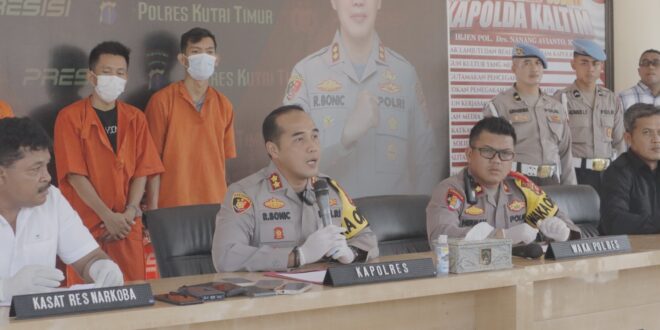 Kutim – Polres Kutai Timur, Sangatta, Kab. Kutai Timur. Menangkap tersangka pengedar narkoba jenis sabu sabu seberat 1.139,39 Gram. Tersangka berinisial AB ditangkap di Kota Sangatta, Kab. Kutai Timur.