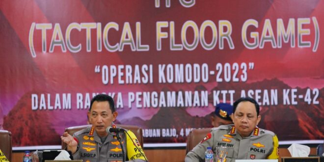 NTT – Kapolri Jenderal Listyo Sigit Prabowo meninjau secara langsung kegiatan Tactical Floor Game (TFG) pengamanan Konferensi Tingkat Tinggi (KTT) ASEAN di Labuan Bajo, Nusa Tenggara Timur (NTT).