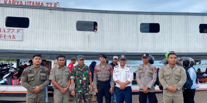 Kutai Barat – Polres Kutai Barat dan jajaran Polsek melaksanakan kegiatan Pengamanan di pos-pos yang ada di wilayah hukum Polres Kutai Barat dalam rangka Ops Lilin Mahakam Nataru 2023/2024 arus di pelabuhan Melak Kecamatan Melak Kabupaten Kutai Barat, Senin (25/12/2023).