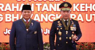 Menteri Pertahanan RI sekaligus presiden terpilih Prabowo Subianto menerima tanda kehormatan Bintang Bhayangkara Utama dari Polri. Penyematan tanda kehormatan itu dilaksanakan di Rupattama Markas Besar (Mabes) Polri, Jakarta Selatan, pada Kamis (20/6/2024) siang. Mengenakan jas dan kopiah, Prabowo tiba di Mabes Polri sekitar pukul 14.00 WIB disambut Kapolri Jenderal Pol. …
