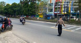 Dit Samapta Polda Kaltim Hadir Laksanakan Pengaturan Arus Lalu Lintas di Kota Balikpapan