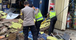Respon Cepat, Pammat Dit Samapta Polda Kaltim Datangi TKP Ruko Roboh