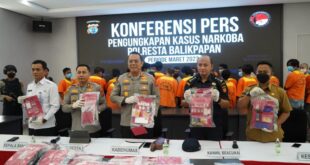 Balikpapan – Polresta Balikpapan menggelar Konferensi Pers hasil pengungkapan kasus narkoba selama dibulan maret 2023 bertempat di Ruang Command Center Polresta Balikpapan, Senin (10/04/2023). Kegiatan tersebut dipimpin langsung Kabid Humas Polda Kaltim Kombes Pol Yusuf Sutejo, S.I.K., M.T., didampingi Kapolresta Balikpapan AKBP Anton Firmanto, serta dihadiri Kepala BNN Balikpapan, Kanwil …