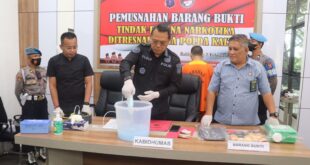 Balikpapan – Dit Resnarkoba Polda Kaltim menggelar pemusnahan Barang Bukti narkoba jenis sabu-sabu, Kamis (02/02/2023). Dalam kesempatan tersebut, Pemusnahan BB narkoba berlangsung di ruang Direktorat Reserse Narkoba Polda Kaltim dan dipimpin oleh Kabid Humas Polda Kaltim Kombes pol Yusuf Sutejo S.I.K., M.T. Kabid Humas Polda Kaltim mengatakan, pemusnahan sabu-sabu ini …