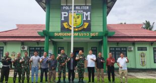 Kutim – Kapolres Kutai Timur AKBP Anggoro Wicaksono.,S.H.,S.I.K.,M.H., sambut kunjungan kerja Danpomdam VI/ Mlw di Kantor Sub Denpom VI/ 1-5 Sanggatta, Sabtu (14/1/2023). Penyambutan juga diikuti Bupati Kutai Timur Drs. H. Ardiansyah Sulaiman, M.Si., Dandim 0909/ KTM Letkol Inf Adi Swastika, S.Hub., Int, Danlanal Sangatta Letkol Laut (P) Shodikin M.Tr.Oplsa, …