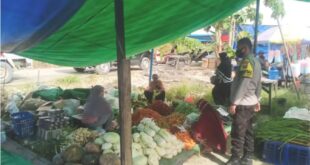 Patroli Pasar Tradisional, Bhabinkamtibmas Polres Kukar Berikan Himbauan Kamtibmas dan Prokes