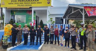 Berau – Dansat Brimob Polda Kaltim Kombes Pol Andy Rifai,S.I.K. M.H. didampingi Kasatlantas polres Berau AKP Edo Damara Yuda S.I.K. beserta Danki Brimob kompi 3 Batalyon C Pelopor Iptu Junaidi, S.H Mengecek Posko Pelayanan Terpadu Natal 2022 dan tahun baru 2023 di kabupaten Berau. Dansat Brimob Polda Kaltim Kombes Pol …