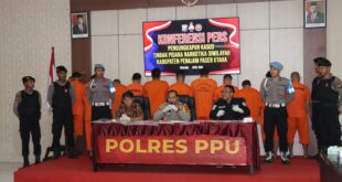 PPU – Polres Penajam Paser Utara (PPU) dalam kegiatan konferensi Pers berhasil mengungkap kasus penyalahgunaan narkotika jenis sabu-sabu di Kabupaten PPU Sebanyak tujuh kasus dengan jumlah tersangka sebanyak 11 orang berhasil diringkus oleh jajaran Polres PPU selama dua bulan terakhir. Jum’at 26/04/2024. “Polres Ppu berhasil mengungkap tujuh laporan polisi dengan …