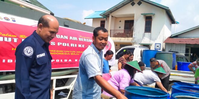 Balikpapan – Dalam rangka Hut ke-72 Humas Polri, Bid Humas Polda Kaltim laksanakan Bakti Sosial berupa pendistribusian bantuan air bersih kepada warga yang mengalami kekurangan air bersih akibat musim kemarau, Rabu (4/10/2023).