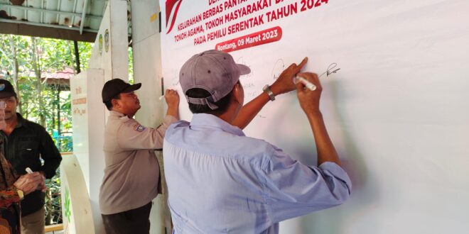 Bontang – Bhabinkamtibmas Kelurahan Berbas Pantai Aipda Styo Wahyudi Mengikuti kegiatan Deklarasi Anti Hoax yang digelar oleh Kelurahan Berbas Pantai dalam rangka pemilu serentak tahun 2024. Kamis (9/3/2023)