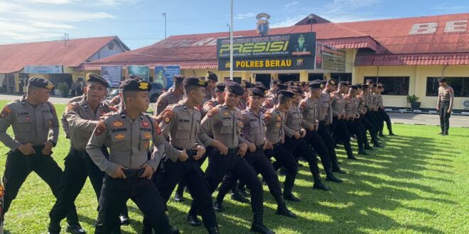Berau – Sat Samapta Polres Berau laksanakan latihan Dalmas di halaman Mako Polres Berau, Rabu (29/5/2024).