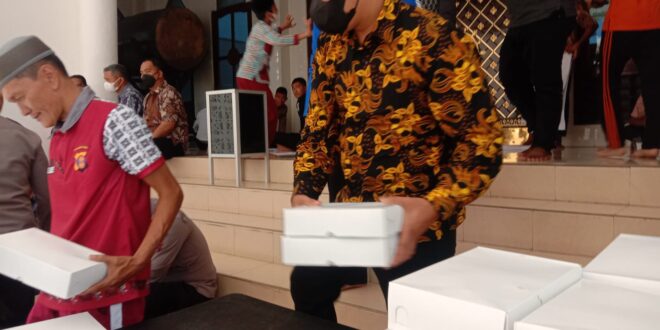 Balikpapan – Polda Kaltim melalui Direktorat Rekrimsus melaksanakan program Jumat berbagi dengan cara membagikan nasi kotak kepada para jamaah dan pengurus Masjid Al-Ikhlas Polda Kaltim, Jumat (9/12/2022) usai melaksanakan shalat jumat.