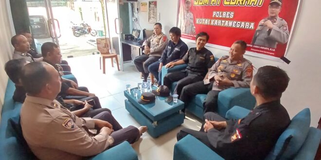 Kukar – Kapolres Kutai Kartanegara AKBP Hari Rosena diwakili Kasat Binmas Iptu Suharyanto mendengarkan masukan dan informasi seputar kamtibmas yang disampaikan anggota Senkom Mitra Polri, Jum’at (15/12/2023).