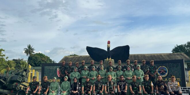 Bontang – Kabag Ops Polres Bontang Kompol Awan Kurnianto menghadiri Penyambutan Kunjungan Kerja Danpussenarhanud TNI AD Mayjen TNI Chandra Wijaya dan Direktur Kesenjataan Pussenarhanud Brigjen TNI Elman Nawendro ke Markas Bataylon Arhanud 7/ABC, Kamis (1/1/2024) pukul 06.30 wita.