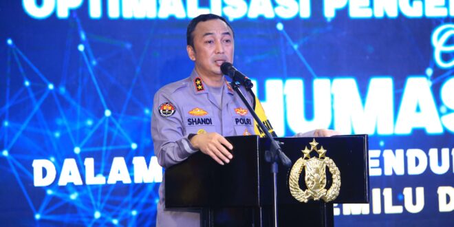 Kadiv Humas Polri Irjen. Pol. Sandi Nugroho dalam sambutannya menerangkan bahwa tantangan pemilu kali ini yang tidak mudah menjadi kesadaran untuk terus memacu meningkatkan kemampuan pengelolaan digital di seluruh jajaran humas. Oleh karenanya, penting bagi semua pihak untuk bersama-sama menciptakan konten-konten positif di ruang digital demi mewujudkan pesat demokrasi yang sesungguhnya.