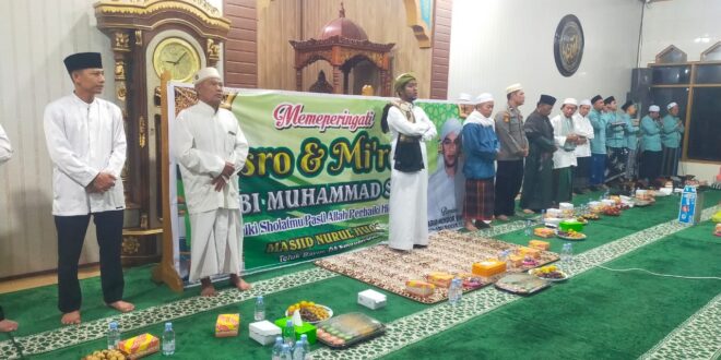Acara peringatan Isra Mi’raj di Masjid Nurul Huda Teluk Bayur diisi dengan ceramah agama, dan doa bersama untuk umat Islam.