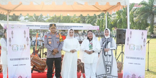 Balikpapan – Kapolda Kalimantan Timur Irjen Pol Drs. Nanang Avianto M.Si., bersama Ketua Bhayangkari Daerah Kaltim Ny. Dewi Nanang Avianto secara resmi membuka event Pasar Ramadhan dari UMKM Binaan Bhayangkari Daerah Kaltim yang bertempat di Lapangan M.Jasin Sat Brimob Polda Kaltim, Selasa (26/03/24).