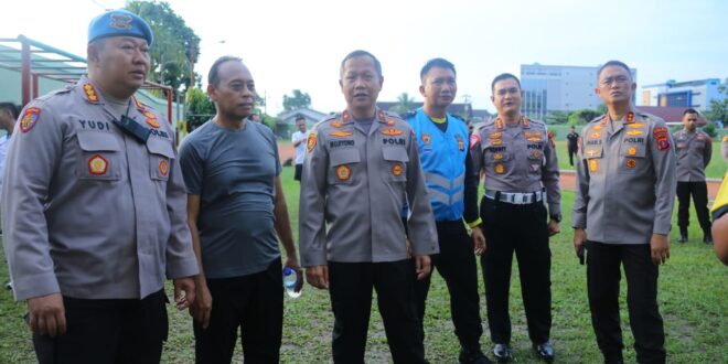 Balikpapan – Kapolda Kaltim Irjen Pol. Drs, Imam Sugianto, M.Si tinjau pelaksanaan kegiatan tes kesamaptaan Jasmani Sespimen Polda Kaltim di Lapangan Sudirman Balikpapan, Selasa (20/12/22).