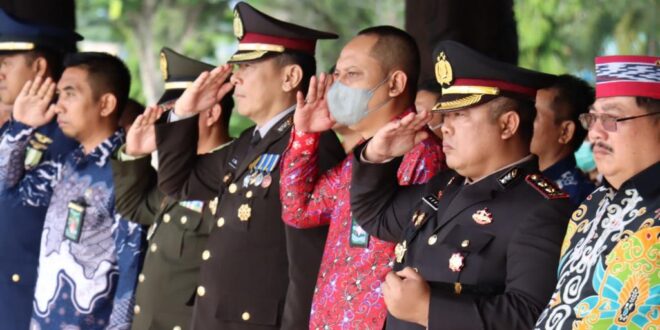 Kubar – Kapolres Kutai Barat Akbp Heri Rusyaman, S.I.K.,M.H., di dampingi Wakapolres Kutai Barat Kompol I Gde Dharma Suyasa, S.H., berserta Pju Polres Kutai Barat Dan 2 Pleton Sat Samapta Dan Gabungan Staff Mengikuti Upacara Yang Dilaksanakan Di Alun-alun Itho. Kamis 1 juni 2023