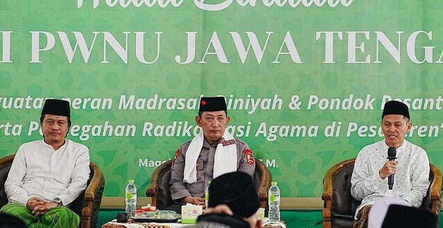 “Jadi hari ini, saya mendapatkan undangan dari Rabithah Ma’ahid al-Islamiyah (RMI) Jateng untuk memberikan materi terkait dengan masalah tantangan pesantren menghadapi radikalisme. Tentu ini sangat sesuai dengan program kepolisian, yang juga tentunya kita selalu ingin menjaga yang namanya 4 pilar, yang namanya toleransi, dan kehidupan yang bhinneka tunggal ika,” kata Sigit usai menjadi pemateri dalam acara tersebut.