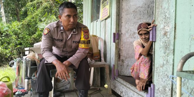 Samarinda – Kepedulian terhadap warga lanjut usia (Lansia) ,Bhabinkamtibmas Kelurahan Sambutan Polsek Samarinda Kota Aiptu Yoyok Setyawan melaksanakan sambang kerumah ibu Norhasanah RT.16 Kel.Sambutan Kecamatan Sambutan Kota Samarinda, Kamis (21/12/23).