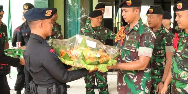 Samarinda – Komandan Batalyon C Pelopor Kompol Sony Laway, S.I.K. didampingi Pejabat Utama (PJU) Batalyon C Pelopor memberikan ucapan ulang tahun TNI ke-78 Tahun 2023, di Batalyon Kaveleri 13/ Satya Lembuswana, Jumat (06/10/2023).