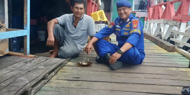 Balikpapan – Personil Binmas Air Direktorat Polisi Air dan Udara Polda Kalimantan Timur turun langsung ke lapangan melalui program Polisi RW di Pesisir Klandasan Ulu, Balikpapan Kota, Kamis (04/01/24).