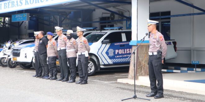 Balikpapan – AKBP Muh Roni Mustofa S.I.K., M.I.K., the Deputy Director of Traffic of East Kalimantan Regional Police, led a joint roll call on Friday morning (22/12/2023) as part of the Mahakam Candle Operation 2023.
