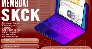 CATAT ! 7 SYARAT MEMBUAT SKCK Membuat Surat Keterangan Catatan Kepolisian (SKCK)dapat dilakukan secara ofline maupun online 1) Fotokopi e – KTP dengan menunjukan e – KTP asli 2) Fotokopi Paspor 3) Fotokopi Kartu Keluarga (KK) 4) Fotokopi Akte lahir/kenal lahir/ijazah 5) Fotokopi kartu identitas lain bagi yang belum memenuhi …