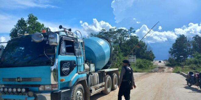 PPU – Personel Ditsamapta Polda Kaltim laksanakan patroli dan pengamanan di sekitar kawasan pos pam dermaga dan bangunan jalan Tol Pulau Balang Kel. Pantai Lango Kec. Penajam Kab. Penajam Paser Utara Kaltim, Minggu (13/11/2022).