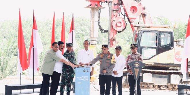 Sepaku – Hari kedua kunjungan kerja di Ibu Kota Nusantara (IKN), Presiden Joko Widodo resmi melakukan groundbreaking pembangunan gedung Polres khusus kawasan Ibu Kota Nusantara (IKN), Kamis (21/12/2023).