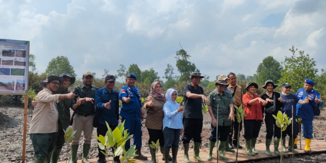 Paser – Kunjungan kerja Kepala Badan Restorasi Gambut dan Mangrove Republik Indonesia (BRGM RI) beserta penasehat senior Menteri Lingkungan Hidup dan Kehutanan di wilayah Penajam Paser Utara. Kegiatan ini difokuskan pada percepatan rehabilitasi mangrove dan pemantauan perkembangan bibit mangrove yang telah ditanam sebelumnya. Jumat (6/10/2023).