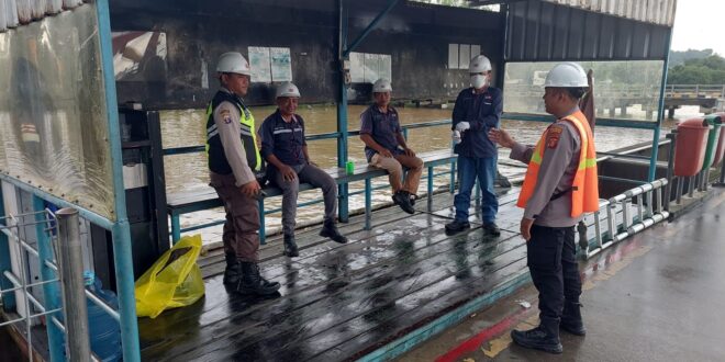 Samarinda – Giat Personel Polmas Polsek Kawasan Pelabuhan Polresta Samarinda Polda Kaltim Aipda Muhammad Raya kembali melaksankan patroli sambang ke karyawan dan TKBM yang berada di Pelabuhan TPK Palaran. Rabu (8/3/2023).