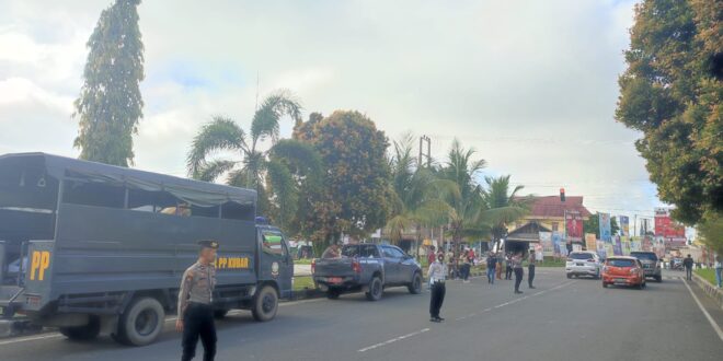 Kubar – Personel Polres Kutai Barat melaksanakan pengamanan dan monitoring Penertiban Alat Peraga Kampanye (APK) Peserta Pemilu TA 2024 oleh Bawaslu Kabupaten Kutai Barat, Sabtu (27 /1/2024)