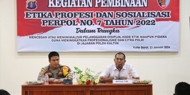 Kutai Barat – Polres Kutai Barat Polda Kalimantan Timur, tepatnya di aula Polres Kutai Barat sedang berlangsung kegiatan pembinaan etika profesi Polri dalam rangka pencegahan perilaku menyimpang dan pelanggaran personel Polri dari Bidang Propam Polda Kalimantan Timur, Selasa (23/1/2024).