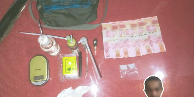 Selanjutnya dilaksanakan penggeledahan badan terhadap AS (51) dan ditemukan 2 (satu) poket Narkotika jenis sabu seberat 2,64 Gram, 1 (satu) pack plastik klip ukuran kecil kosong, 3 (tiga) unit alat Bong yang digunakan untuk memakai sabu, 2 (dua) buah pipet kaca yang digunakan untuk memakai shabu, uang tunai sebesar Rp 500.000,- Hasil Penjualan shabu, 1 (satu) unit timbangan untuk menimbang shabu yang disimpan di dalam Tas Eiger warna Biru.